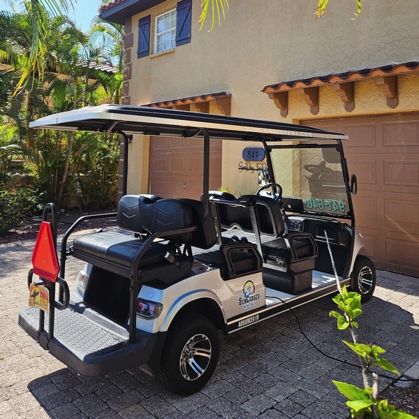 We offer a wide selection of gas, electric and even luxury street legal golf carts with a variety of rental options, so you can find the perfect fit for your needs. When you’re looking for a fun and economical way to get around, we have the perfect golf cart for you. Our carts are clean, reliable, safe and sanitized after each rental. We also offer a variety of extras such as boogie boards, skim boards and SUP boards. Our friendly and knowledgeable staff is always available to help you choose the right golf cart and answer any questions you may have. Call or book with us today and see why we’re the best golf cart rental company on the west coast of Florida.Address & Phone